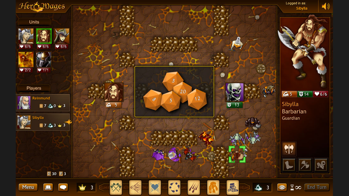 Hero Mages is a digital board game where each player commands a band of mighty heroes fighting for dominance in turn-based tactics brawls. Equipped with a set of dice and a hand of cards representing magical spells, players must leverage skill, luck, and social politics to emerge victorious in exciting battles of turn-based strategy.